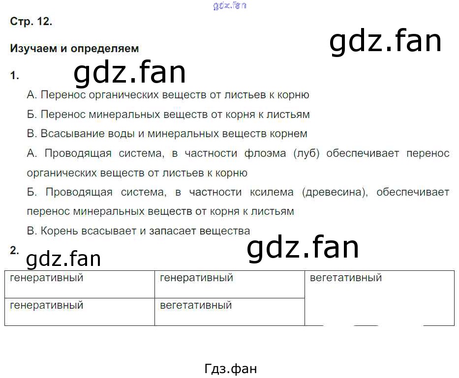 Проверка домашнего задания всегда занимает большое количество времени. На помощь приходит ГДЗ фан по Биологии пятого класса. Здесь собраны популярные ответы на 12 (Изучаем и определяем № 1, 2) Биология 5-6 класс тетрадь-тренажер Сухорукова Л.Н.