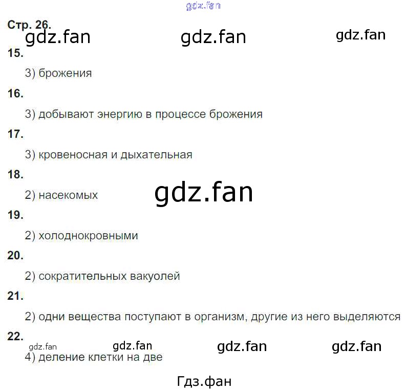 Проверка домашнего задания всегда занимает большое количество времени. На помощь приходит ГДЗ фан по Биологии пятого класса. Здесь собраны популярные ответы на 26 (№ 15, 16, 17, 18, 19, 20, 21, 22) Биология 5-6 класс тетрадь-тренажер Сухорукова Л.Н.