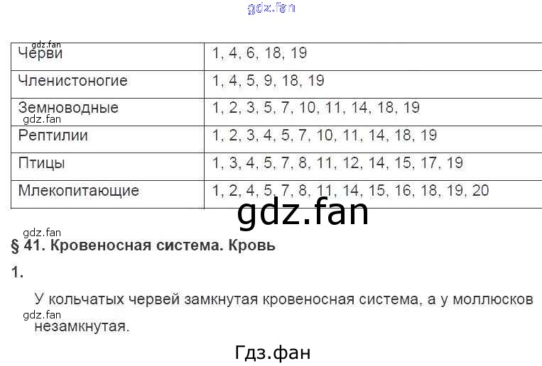 Проверка домашнего задания всегда занимает большое количество времени. На помощь приходит ГДЗ фан по Биологии седьмого класса. Здесь собраны популярные ответы на 109 (§41 № 1) Биология 7 класс рабочая тетрадь Латюшин В.В.