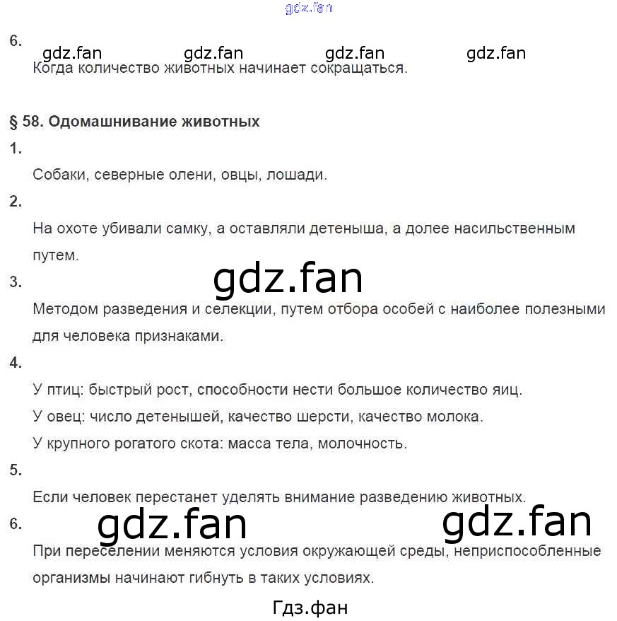 Проверка домашнего задания всегда занимает большое количество времени. На помощь приходит ГДЗ фан по Биологии седьмого класса. Здесь собраны популярные ответы на 138 (№ 6. §58 №1, 2, 3, 4, 5, 6) Биология 7 класс рабочая тетрадь Латюшин В.В.
