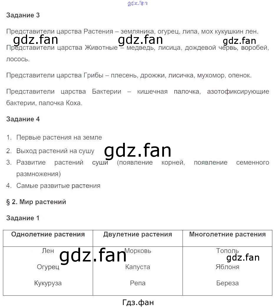 Проверка домашнего задания всегда занимает большое количество времени. На помощь приходит ГДЗ фан по Биологии седьмого класса. Здесь собраны популярные ответы на 4 (№ 3, 4. §2. Мир растений № 1) Биология 7 класс рабочая тетрадь Пономарева И.Н.