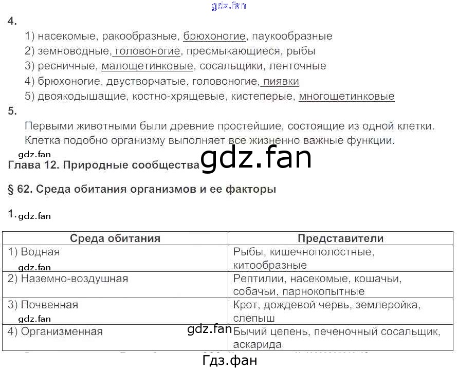 Проверка домашнего задания всегда занимает большое количество времени. На помощь приходит ГДЗ фан по Биологии седьмого класса. Здесь собраны популярные ответы на 108 (№ 4, 5. §62 № 1) Биология 7 класс рабочая тетрадь Тихонова И.Т.