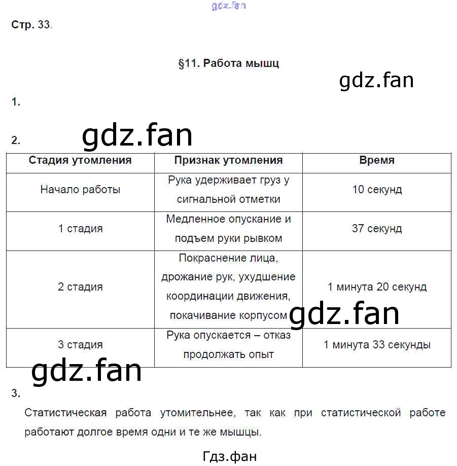 Проверка домашнего задания всегда занимает большое количество времени. На помощь приходит ГДЗ фан по Биологии восьмого класса. Здесь собраны популярные ответы на 33 (§11. Работа мышц № 1) Биология 8 класс рабочая тетрадь Маш Р.Д.