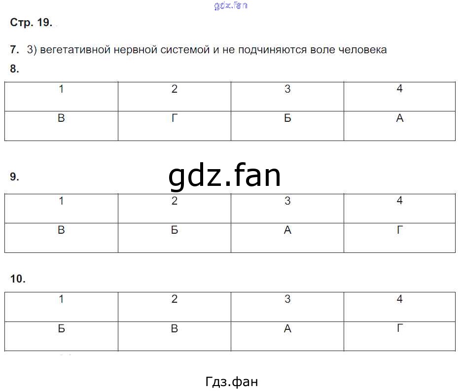 Проверка домашнего задания всегда занимает большое количество времени. На помощь приходит ГДЗ фан по Биологии восьмого класса. Здесь собраны популярные ответы на 19 (№ 7, 8, 9, 10) Биология 8 класс тетрадь-экзаменатор Сухорукова Л.Н.