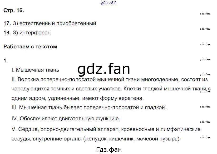 Проверка домашнего задания всегда занимает большое количество времени. На помощь приходит ГДЗ фан по Биологии восьмого класса. Здесь собраны популярные ответы на 16 (№ 17, 18. Работаем с текстом № 1) Биология 8 класс тетрадь-тренажёр Сухорукова Л.Н.