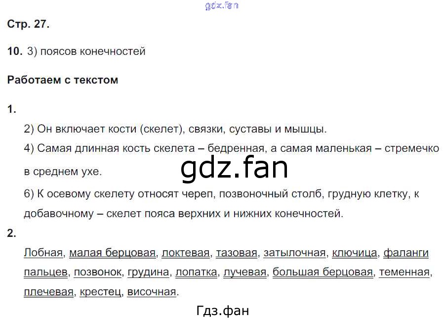 Проверка домашнего задания всегда занимает большое количество времени. На помощь приходит ГДЗ фан по Биологии восьмого класса. Здесь собраны популярные ответы на 27 (№ 10. Работаем с текстом № 1, 2) Биология 8 класс тетрадь-тренажёр Сухорукова Л.Н.