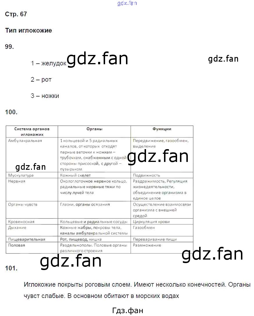 Проверка домашнего задания всегда занимает большое количество времени. На помощь приходит ГДЗ фан по Биологии восьмого класса. Здесь собраны популярные ответы на 67 (Тип иглокожие № 99, 100, 101) Биология 8 класс рабочая тетрадь Захаров В.Б. (к уч. Сонина Н.И.)