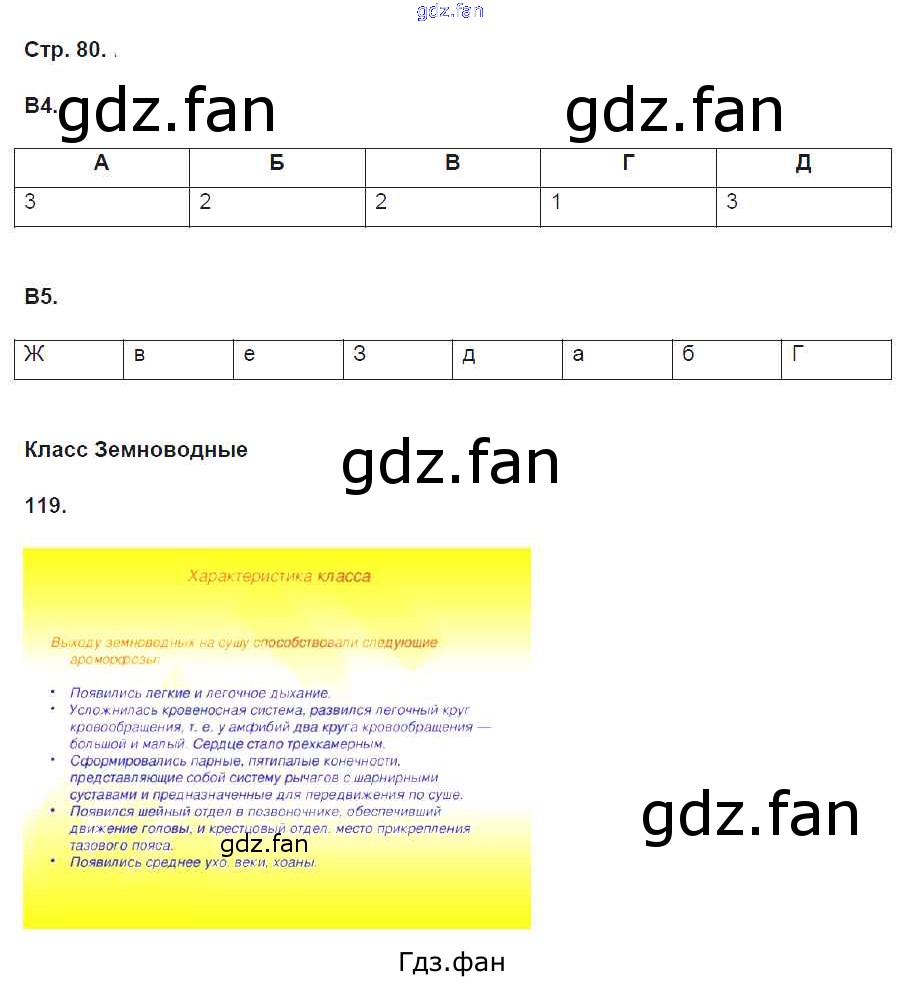 Проверка домашнего задания всегда занимает большое количество времени. На помощь приходит ГДЗ фан по Биологии восьмого класса. Здесь собраны популярные ответы на 80 (Класс Земноводные № 119) Биология 8 класс рабочая тетрадь Захаров В.Б. (к уч. Сонина Н.И.)