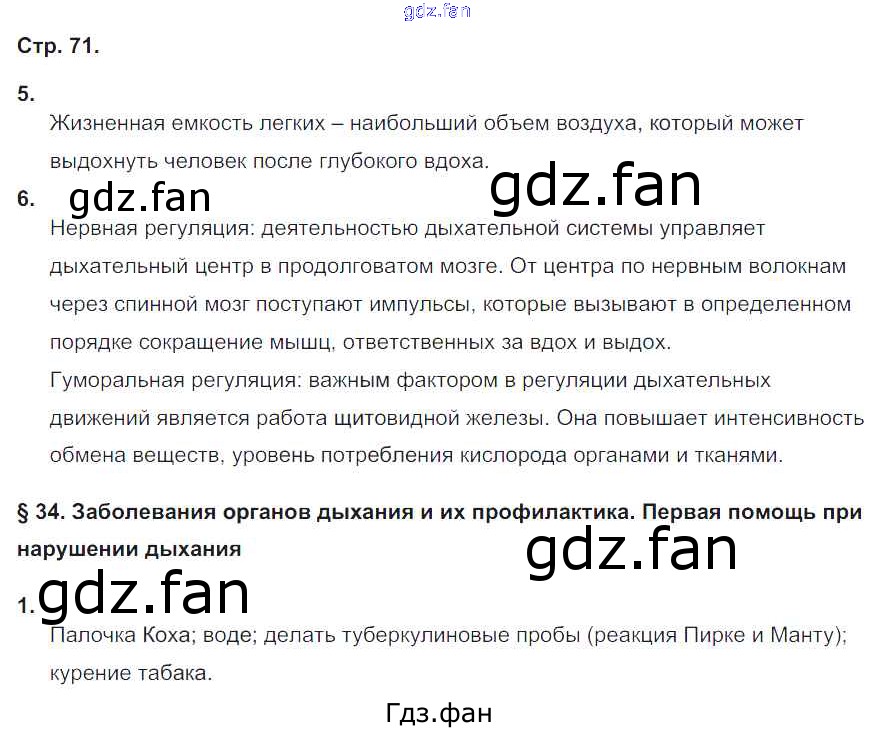 Проверка домашнего задания всегда занимает большое количество времени. На помощь приходит ГДЗ фан по Биологии восьмого класса. Здесь собраны популярные ответы на 71 (№ 5, 6. §34 № 1) Биология 8 класс рабочая тетрадь Жемчугова М.Б.