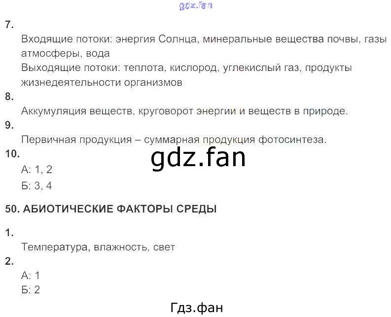 Проверка домашнего задания всегда занимает большое количество времени. На помощь приходит ГДЗ фан по Биологии девятого класса. Здесь собраны популярные ответы на 121 (№ 7, 8, 9, 10. 50. Абиотические факторы среды № 1, 2) Биология 9 класс рабочая тетрадь Цибулевский А.Ю. (к уч. Мамонтова)