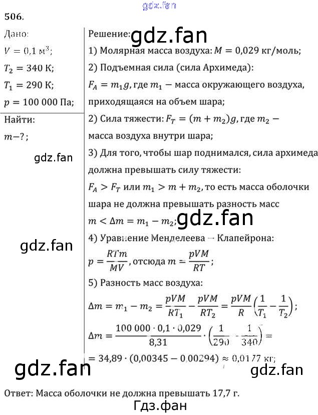 Проверка домашнего задания всегда занимает большое количество времени. На помощь приходит ГДЗ фан по Физике десятого класса. Здесь собраны популярные ответы на 506 (стр. 69) Физика 10-11 класс задачник Рымкевич А.П.