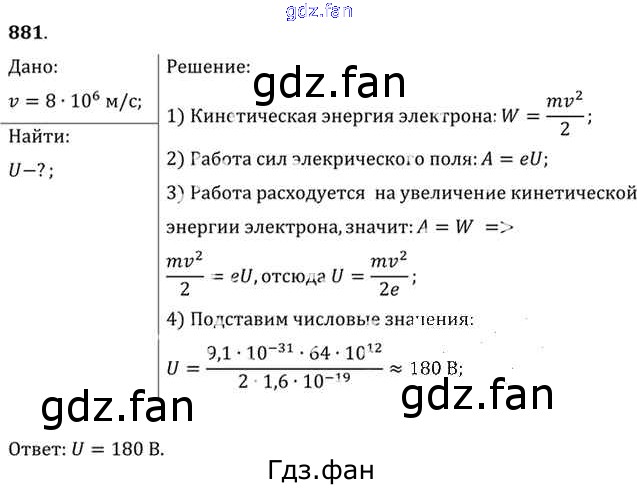 Проверка домашнего задания всегда занимает большое количество времени. На помощь приходит ГДЗ фан по Физике десятого класса. Здесь собраны популярные ответы на 881 (стр. 116) Физика 10-11 класс задачник Рымкевич А.П.