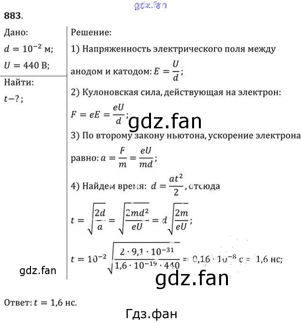 Проверка домашнего задания всегда занимает большое количество времени. На помощь приходит ГДЗ фан по Физике десятого класса. Здесь собраны популярные ответы на 883 (стр. 116) Физика 10-11 класс задачник Рымкевич А.П.