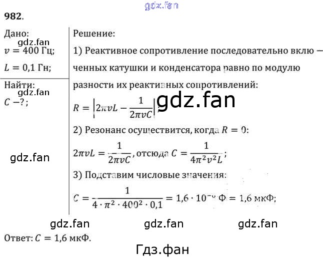 Проверка домашнего задания всегда занимает большое количество времени. На помощь приходит ГДЗ фан по Физике десятого класса. Здесь собраны популярные ответы на 982 (стр. 131) Физика 10-11 класс задачник Рымкевич А.П.