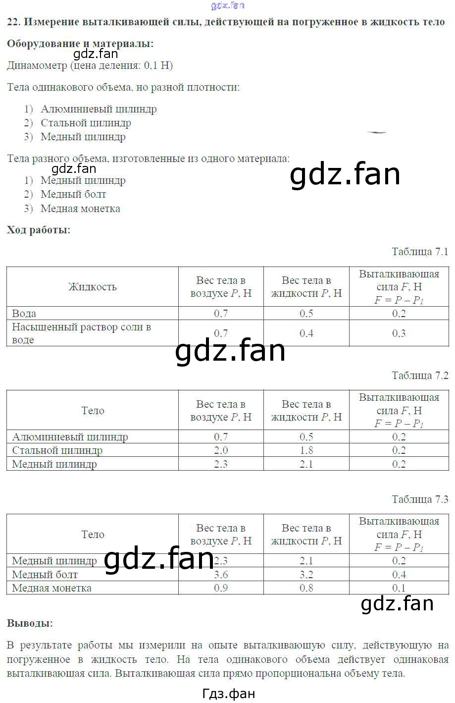 Проверка домашнего задания всегда занимает большое количество времени. На помощь приходит ГДЗ фан по Физике седьмого класса. Здесь собраны популярные ответы на №22. Измерение выталкивающей силы, действующей на погруженное в жидкость тело (стр. 56-57) Физика 7 класс тетрадь-практикум Белага В.В.