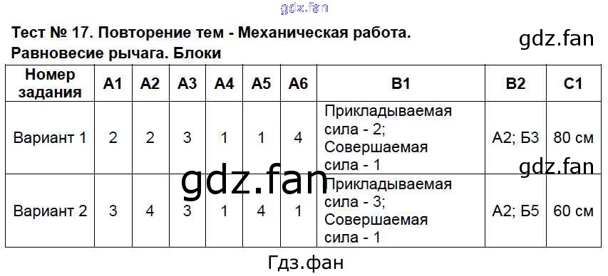 Проверка домашнего задания всегда занимает большое количество времени. На помощь приходит ГДЗ фан по Физике седьмого класса. Здесь собраны популярные ответы на Тест №17 (стр. 70-75) Физика 7 класс контрольно-измерительные материалы Бобошина С.Б.