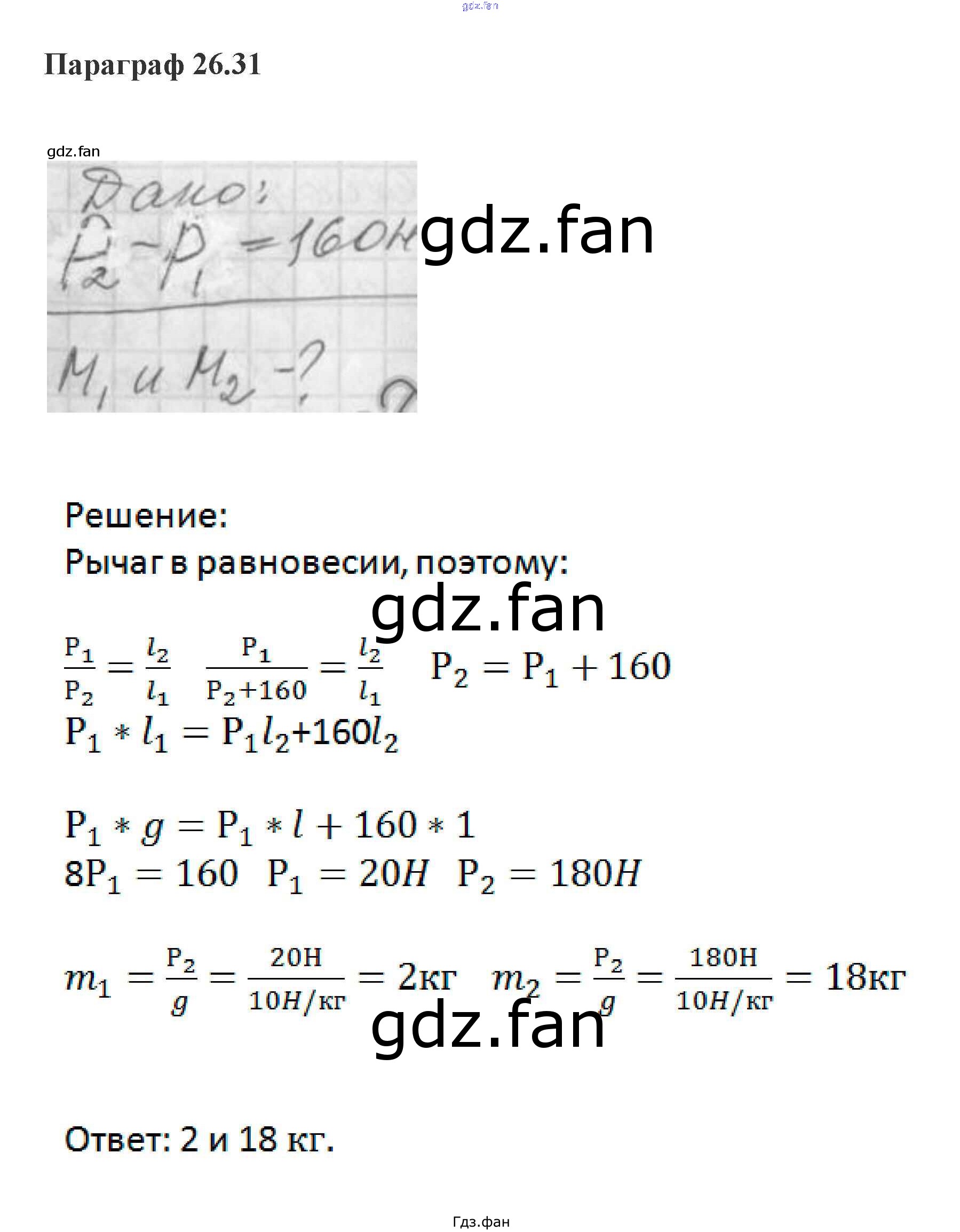 Проверка домашнего задания всегда занимает большое количество времени. На помощь приходит ГДЗ фан по Физике седьмого класса. Здесь собраны популярные ответы на 26.31 (стр. 159) Физика 7 класс задачник Генденштейн