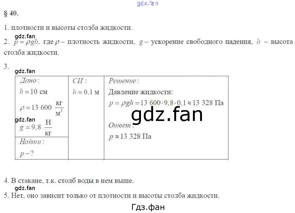 Проверка домашнего задания всегда занимает большое количество времени. На помощь приходит ГДЗ фан по Физике седьмого класса. Здесь собраны популярные ответы на 83 (§40. Расчёт давления жидкости на дно и стенки сосуда № 1, 2, 3, 4, 5) Физика 7 класс рабочая тетрадь Касьянов В.А. (к уч. Перышкина)