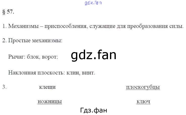 Проверка домашнего задания всегда занимает большое количество времени. На помощь приходит ГДЗ фан по Физике седьмого класса. Здесь собраны популярные ответы на 130 (§57. Простые механизмы № 1, 2, 3) Физика 7 класс рабочая тетрадь Касьянов В.А. (к уч. Перышкина)