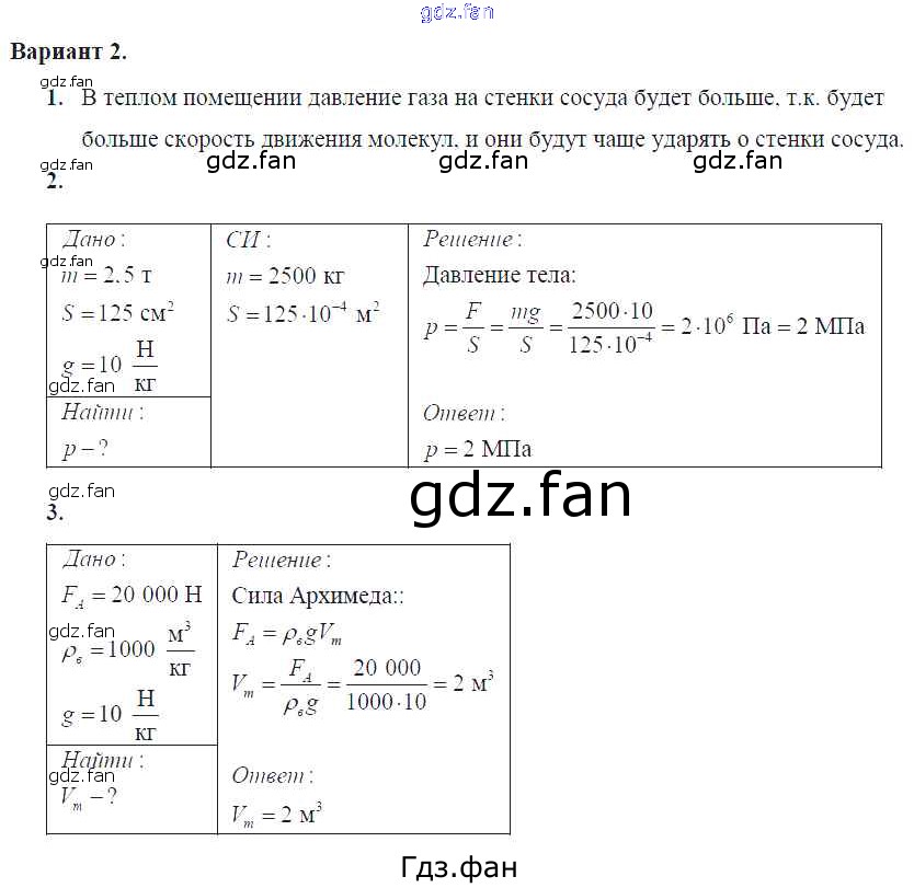 Проверка домашнего задания всегда занимает большое количество времени. На помощь приходит ГДЗ фан по Физике седьмого класса. Здесь собраны популярные ответы на вариант 2 (стр. 63) Физика 7 класс Самостоятельные и контрольные работы Марон А.Е. (к уч. Перышкина)