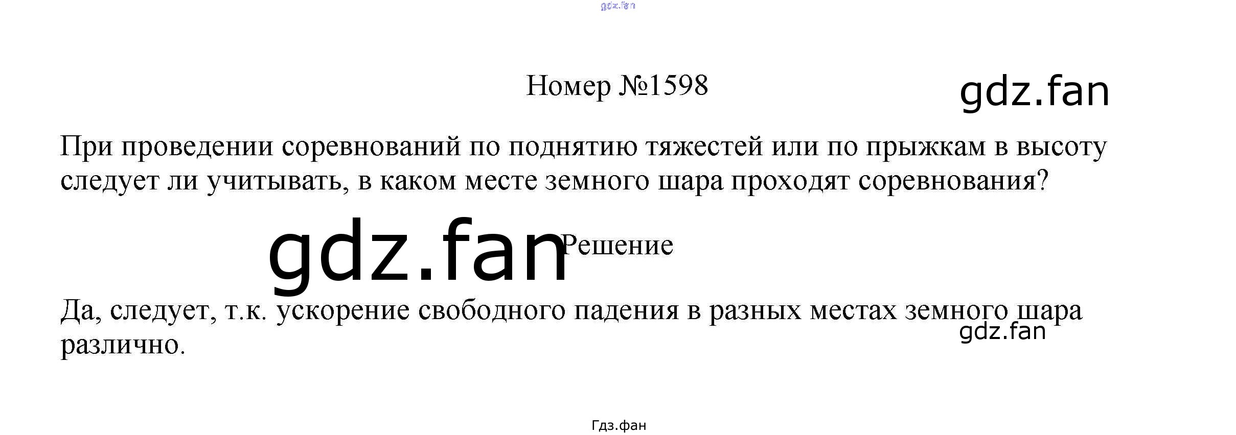 Проверка домашнего задания всегда занимает большое количество времени. На помощь приходит ГДЗ фан по Физике седьмого класса. Здесь собраны популярные ответы на 1598 (стр. 187) Физика 7-9 классы сборник вопросов и задач Марон А.Е.