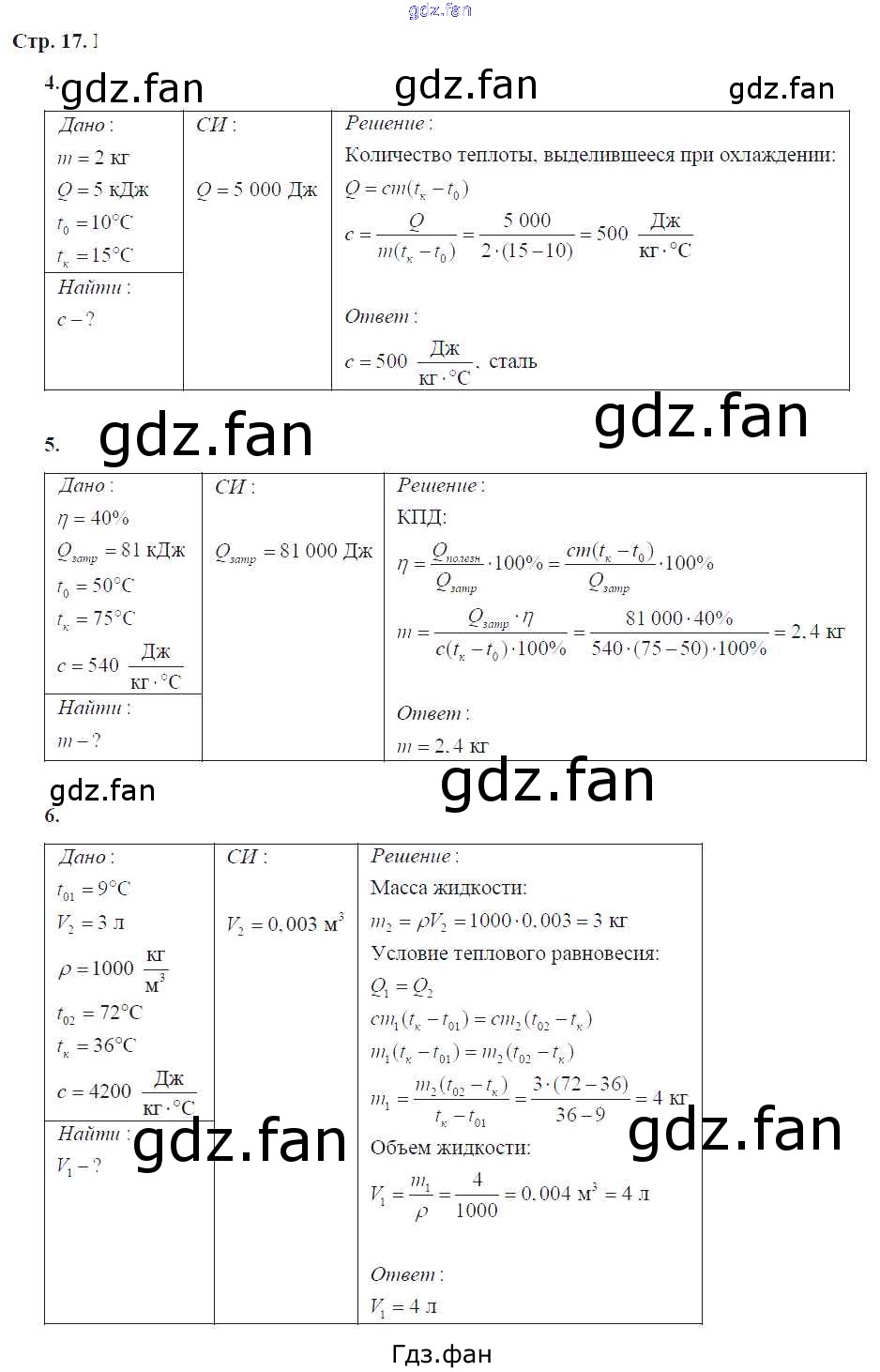 Проверка домашнего задания всегда занимает большое количество времени. На помощь приходит ГДЗ фан по Физике восьмого класса. Здесь собраны популярные ответы на 17 (№ 4, 5, 6) Физика 8 класс тетрадь-тренажер Артеменков Д.А.