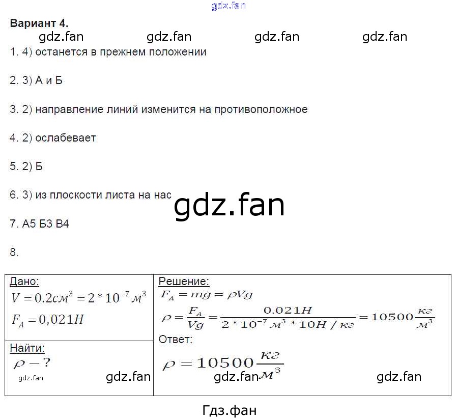 Проверка домашнего задания всегда занимает большое количество времени. На помощь приходит ГДЗ фан по Физике восьмого класса. Здесь собраны популярные ответы на вариант-4 (стр. 105-107) Физика 8 класс Контрольные и самостоятельные работы Громцева О.И. (к уч. Перышкина)