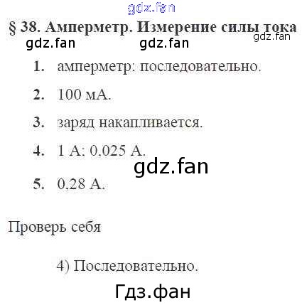 Проверка домашнего задания всегда занимает большое количество времени. На помощь приходит ГДЗ фан по Физике восьмого класса. Здесь собраны популярные ответы на 79 (§38 Амперметр. Измерение силы тока № 1, 2, 3, 4, 5, Проверь себя) Физика 8 класс рабочая тетрадь Касьянов В.А. (к уч. Перышкина)