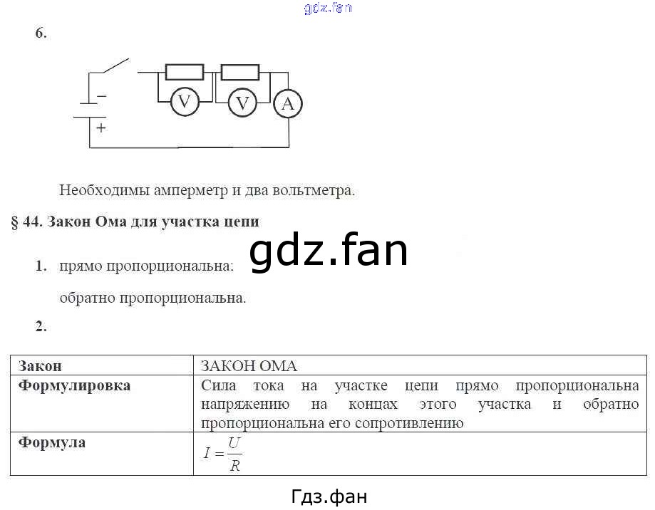 Проверка домашнего задания всегда занимает большое количество времени. На помощь приходит ГДЗ фан по Физике восьмого класса. Здесь собраны популярные ответы на 87 (№ 6. §44 Закон Ома для участка цепи № 1, 2) Физика 8 класс рабочая тетрадь Касьянов В.А. (к уч. Перышкина)