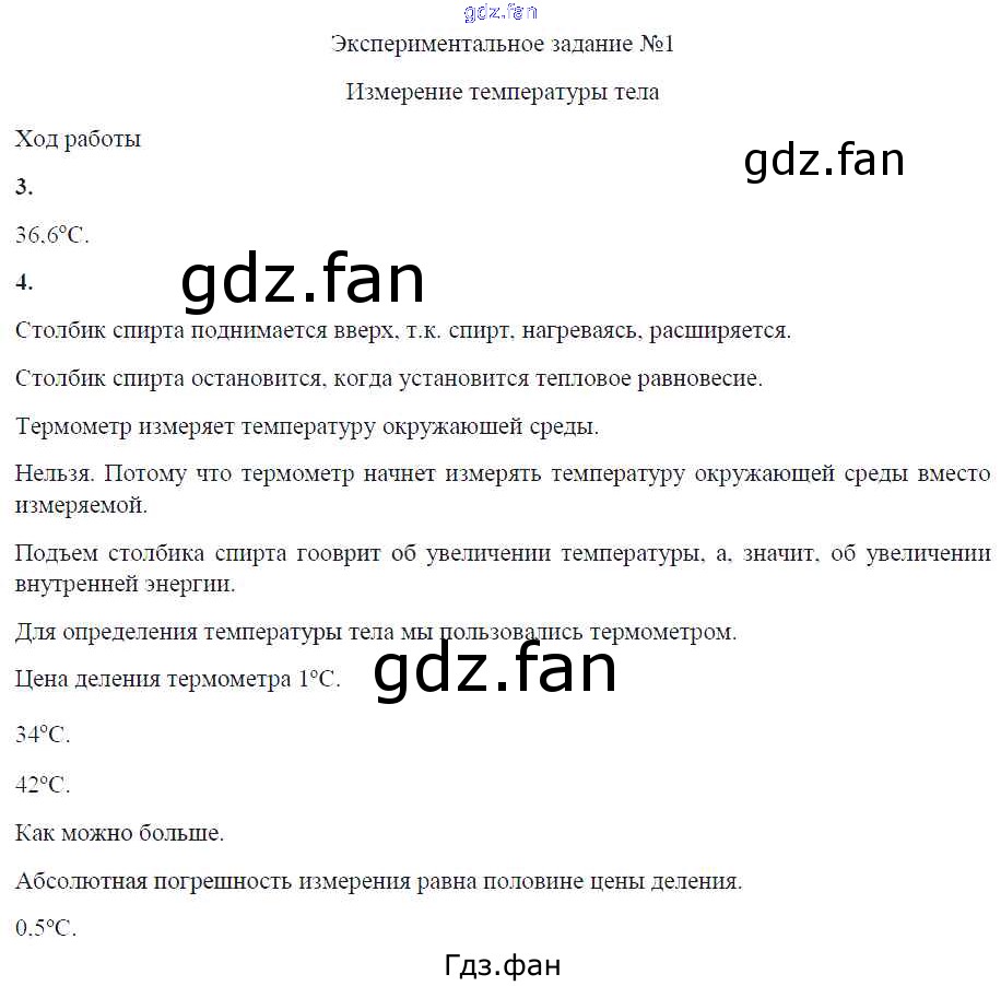 Проверка домашнего задания всегда занимает большое количество времени. На помощь приходит ГДЗ фан по Физике восьмого класса. Здесь собраны популярные ответы на ЭЗ №1. Измерение температуры тела (стр. 3-4) Физика 8 класс тетрадь для лабораторных работ Минькова Р.Д. (к уч. Перышкина)
