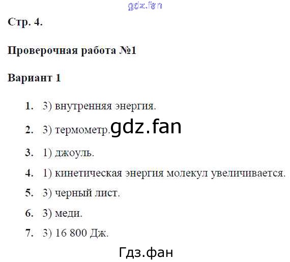 Проверка домашнего задания всегда занимает большое количество времени. На помощь приходит ГДЗ фан по Физике восьмого класса. Здесь собраны популярные ответы на 4 (проверочная работа № 1. вариант 1) Физика 8 класс тетрадь-экзаменатор Жумаев В.В.
