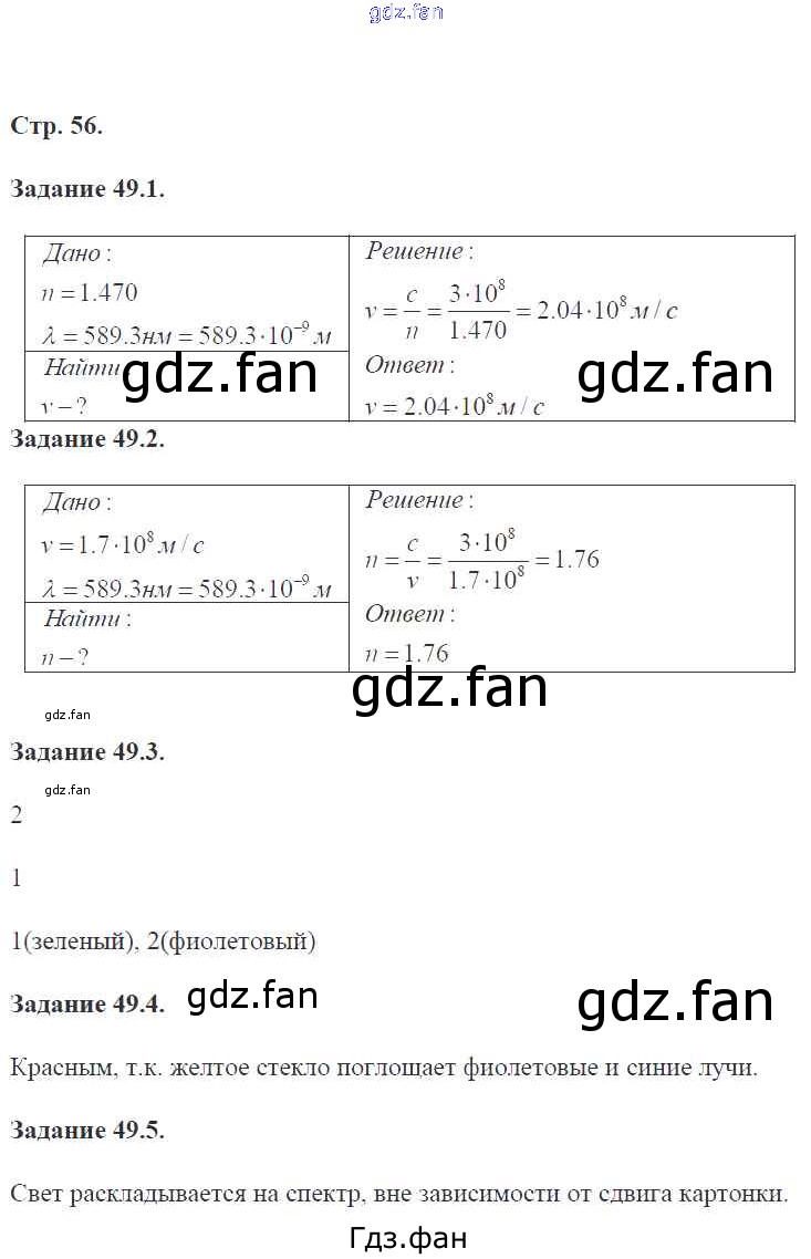 Проверка домашнего задания всегда занимает большое количество времени. На помощь приходит ГДЗ фан по Физике девятого класса. Здесь собраны популярные ответы на 56 (задание 49.1, 49.2, 49.3, 49.4, 49.5) Физика 9 класс рабочая тетрадь Гутник Е.М. (к уч. Перышкина А.В.)