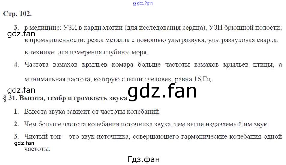 Проверка домашнего задания всегда занимает большое количество времени. На помощь приходит ГДЗ фан по Физике девятого класса. Здесь собраны популярные ответы на 102 (№ 3, 4. §31. Высота, тембр и громкость звука № 1, 2, 3) Физика 9 класс рабочая тетрадь Касьянов В.А. (к уч. Перышкина А.В.)