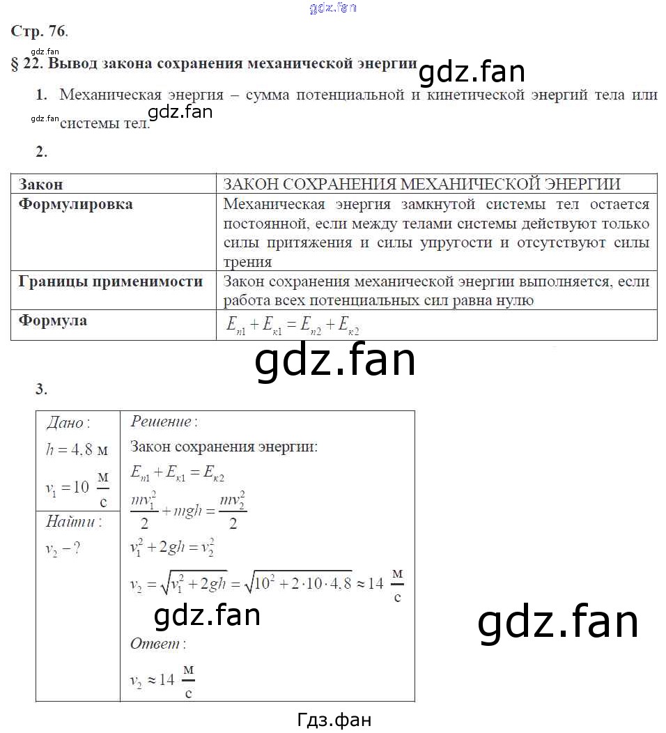Проверка домашнего задания всегда занимает большое количество времени. На помощь приходит ГДЗ фан по Физике девятого класса. Здесь собраны популярные ответы на 76 (§22. Вывод закона сохранения механической энергии № 1, 2, 3) Физика 9 класс рабочая тетрадь Касьянов В.А. (к уч. Перышкина А.В.)