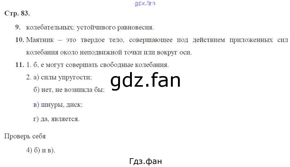 Проверка домашнего задания всегда занимает большое количество времени. На помощь приходит ГДЗ фан по Физике девятого класса. Здесь собраны популярные ответы на 83 (№ 9, 10, 11, Проверь себя) Физика 9 класс рабочая тетрадь Касьянов В.А. (к уч. Перышкина А.В.)