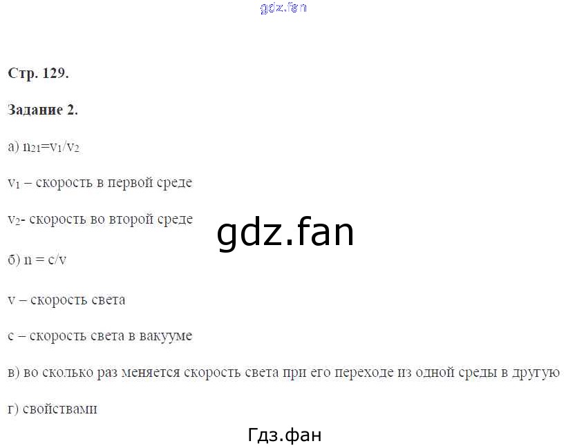 Проверка домашнего задания всегда занимает большое количество времени. На помощь приходит ГДЗ фан по Физике девятого класса. Здесь собраны популярные ответы на 129 (№ 2) Физика 9 класс рабочая тетрадь Перышкин А.В. (к уч. Перышкина А.В.)