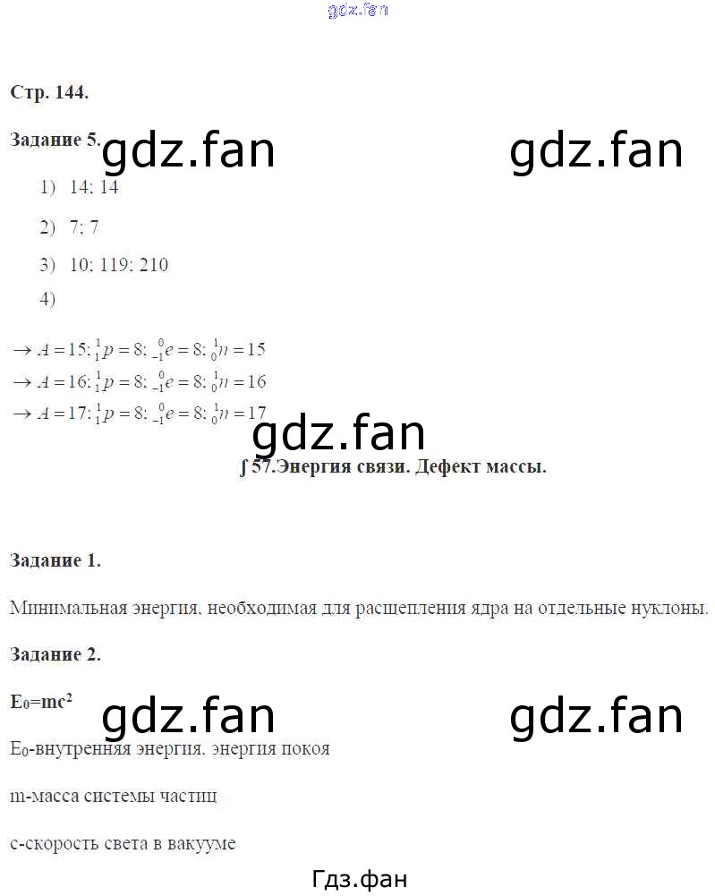 Проверка домашнего задания всегда занимает большое количество времени. На помощь приходит ГДЗ фан по Физике девятого класса. Здесь собраны популярные ответы на 144 (№ 5. §57. Энергия связи. Дефект массы № 1, 2) Физика 9 класс рабочая тетрадь Перышкин А.В. (к уч. Перышкина А.В.)