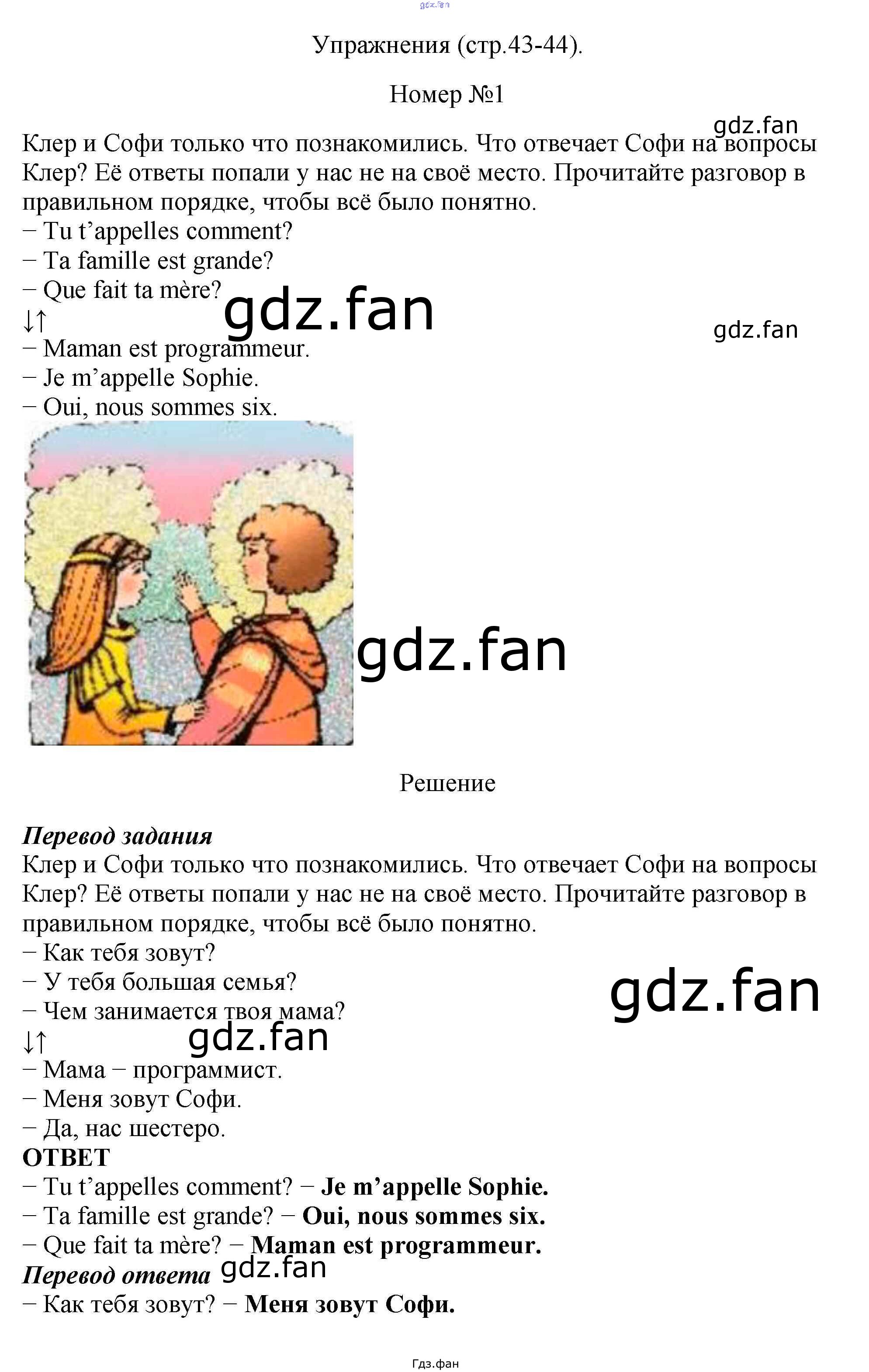 Проверка домашнего задания всегда занимает большое количество времени. На помощь приходит ГДЗ фан по Французскому языку пятого класса. Здесь собраны популярные ответы на стр. 43 Французский язык 5 класс Береговская