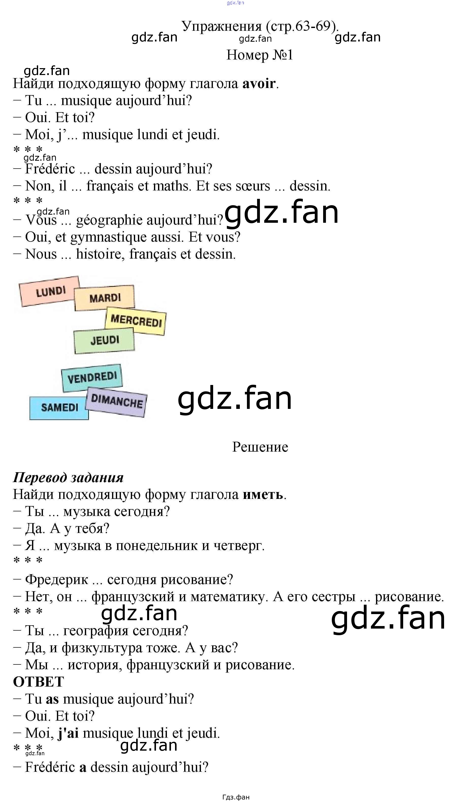 Проверка домашнего задания всегда занимает большое количество времени. На помощь приходит ГДЗ фан по Французскому языку пятого класса. Здесь собраны популярные ответы на стр. 63 Французский язык 5 класс Береговская