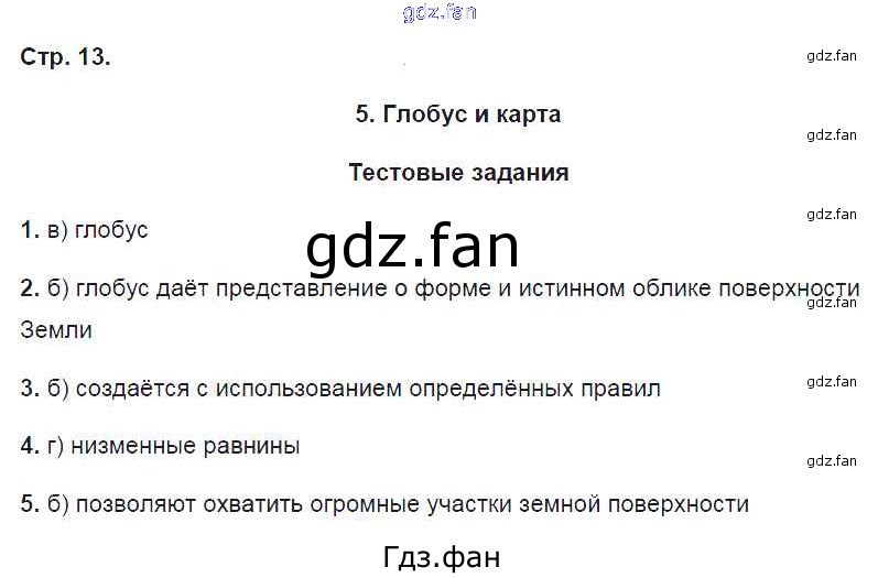 Проверка домашнего задания всегда занимает большое количество времени. На помощь приходит ГДЗ фан по Географии пятого класса. Здесь собраны популярные ответы на 13 (Глобус и карта. Тестовые задания № 1, 2, 3, 4, 5) География 5 класс рабочая тетрадь Домогацких Е.М.
