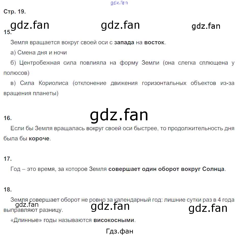 Проверка домашнего задания всегда занимает большое количество времени. На помощь приходит ГДЗ фан по Географии пятого класса. Здесь собраны популярные ответы на 19 (№ 15, 16, 17, 18) География 5 класс рабочая тетрадь Дронов В.П.