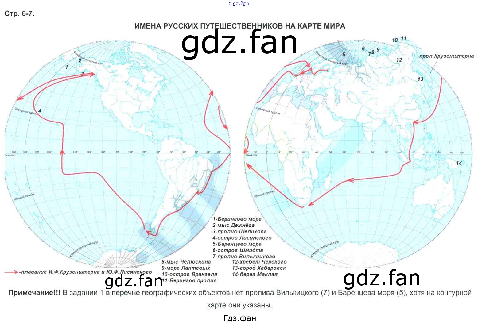 Проверка домашнего задания всегда занимает большое количество времени. На помощь приходит ГДЗ фан по Географии пятого класса. Здесь собраны популярные ответы на 6-7 (Имена русских путешественников на карте мира) География 5 класс контурные карты Курбский Н.А.