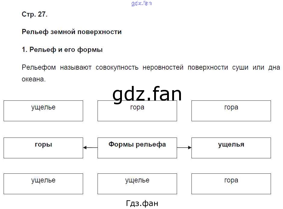 Проверка домашнего задания всегда занимает большое количество времени. На помощь приходит ГДЗ фан по Географии пятого класса. Здесь собраны популярные ответы на 27 (Рельеф земной поверхности. Рельеф и его формы) География 5 класс рабочая тетрадь Летягин А.А.