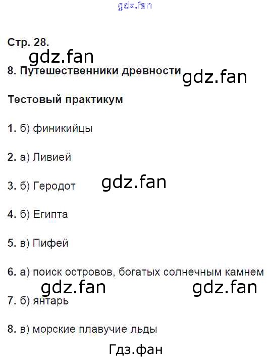 Проверка домашнего задания всегда занимает большое количество времени. На помощь приходит ГДЗ фан по Географии пятого класса. Здесь собраны популярные ответы на 28 (§8. Путешественники древности. Тестовый практикум № 1, 2, 3, 4, 5, 6, 7, 8) География 5 класс тетрадь-практикум Молодцов Д.В. ( к уч. Домогацких Е.М.)