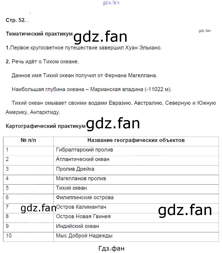 Проверка домашнего задания всегда занимает большое количество времени. На помощь приходит ГДЗ фан по Географии пятого класса. Здесь собраны популярные ответы на 52 (Тематический практикум № 1, 2. Картографический практикум) География 5 класс тетрадь-практикум Молодцов Д.В. ( к уч. Домогацких Е.М.)