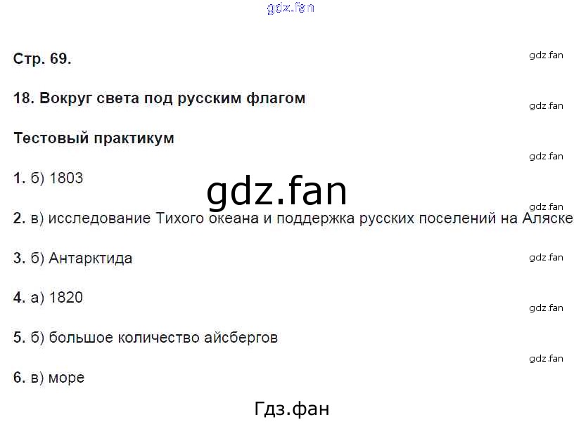 Проверка домашнего задания всегда занимает большое количество времени. На помощь приходит ГДЗ фан по Географии пятого класса. Здесь собраны популярные ответы на 69 (§18. Вокруг света под русским флагом. Тестовый практикум № 1, 2, 3, 4, 5, 6) География 5 класс тетрадь-практикум Молодцов Д.В. ( к уч. Домогацких Е.М.)