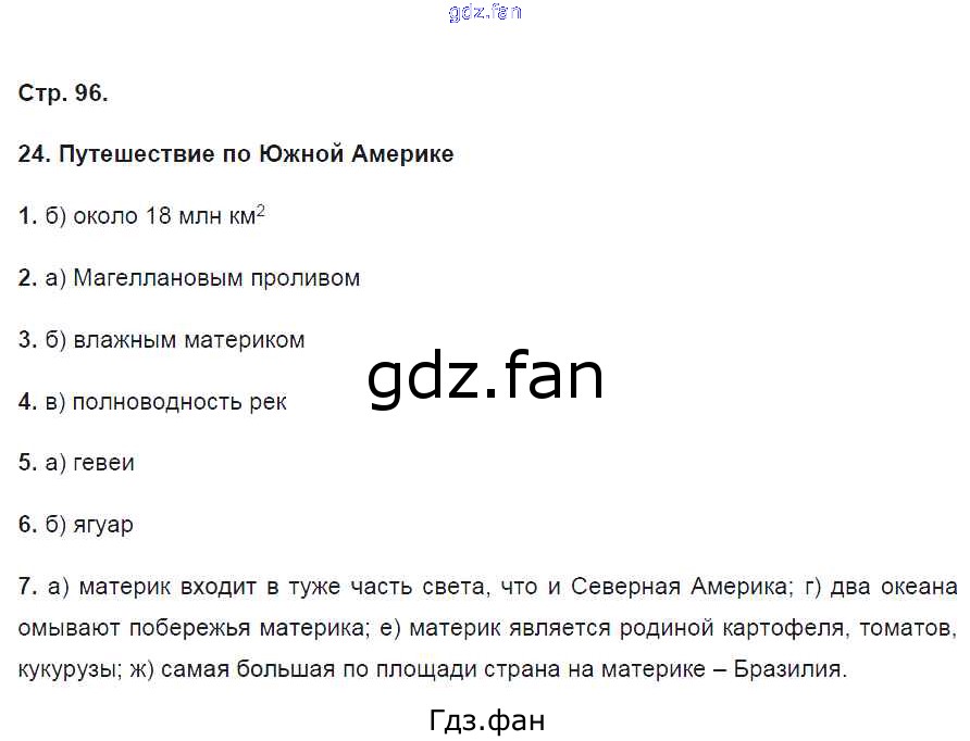Проверка домашнего задания всегда занимает большое количество времени. На помощь приходит ГДЗ фан по Географии пятого класса. Здесь собраны популярные ответы на 96 (§24. Путешествие по Южной Америке. Тестовые задания № 1, 2, 3, 4, 5, 6, 7) География 5 класс тетрадь-практикум Молодцов Д.В. ( к уч. Домогацких Е.М.)