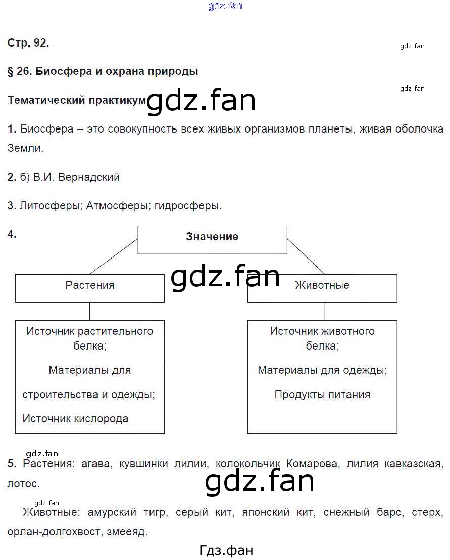 Проверка домашнего задания всегда занимает большое количество времени. На помощь приходит ГДЗ фан по Географии шестого класса. Здесь собраны популярные ответы на 92 (§26. Биосфера и охрана природы. Тематический практикум № 1, 2, 3, 4, 5) География 6 класс тетрадь-практикум Болотникова Н.В. (к уч. Домогацких)