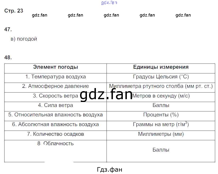 Проверка домашнего задания всегда занимает большое количество времени. На помощь приходит ГДЗ фан по Географии шестого класса. Здесь собраны популярные ответы на 23 (№ 47, 48) География 6 класс рабочая тетрадь Дронов В.П. (к уч. Дронова)