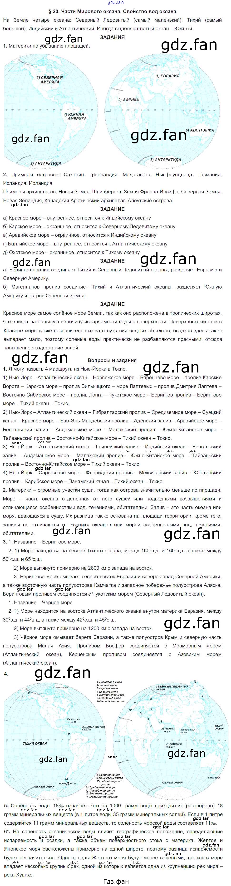 Проверка домашнего задания всегда занимает большое количество времени. На помощь приходит ГДЗ фан по Географии шестого класса. Здесь собраны популярные ответы на §20. Части Мирового океана. Свойство вод океана География. Начальный курс 6 класс Герасимова Т.В.